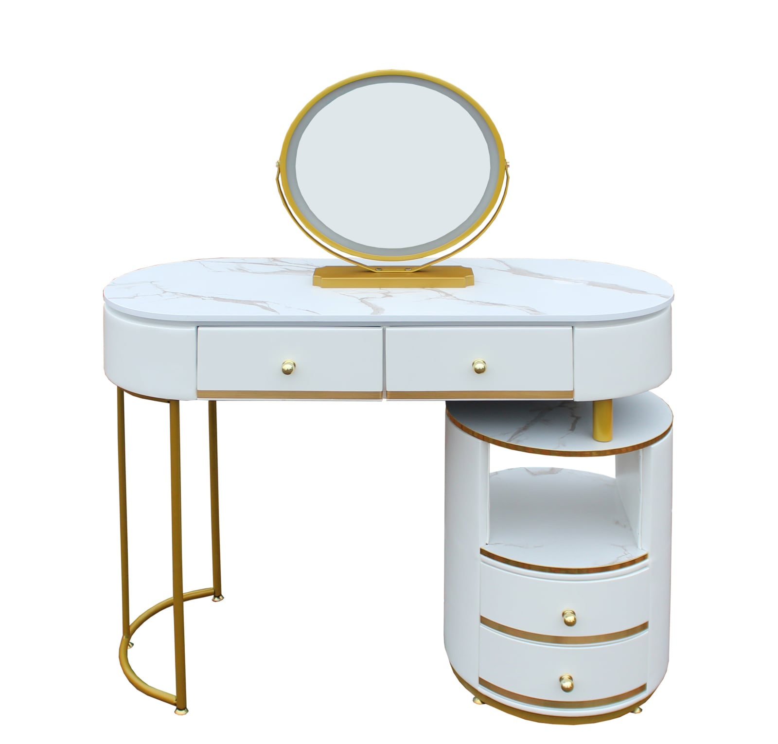 Această masă de toaletă are 2 sertare și un dulap de depozitare, oferind suficient spațiu pentru a vă ajuta să vă puneți toate produsele de îngrijire a pielii; cosmeticele, bijuterii, uscător de păr, ondulator și alte articole de înfrumusețare. Unul dintre sertarele mari are compartimente suplimentare care pot fi împărțite pentru depozitarea bijuteriilor.