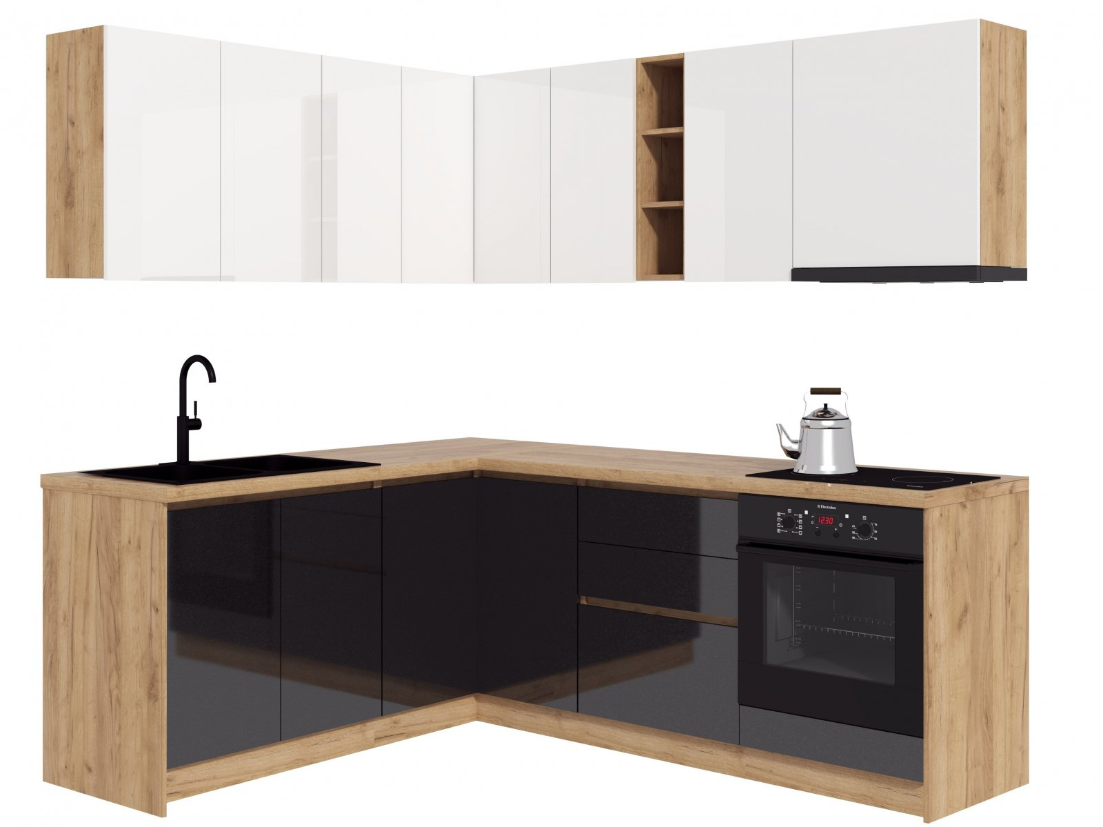 Bucatarie colt Chelsea V1, Alb+Gri antracit