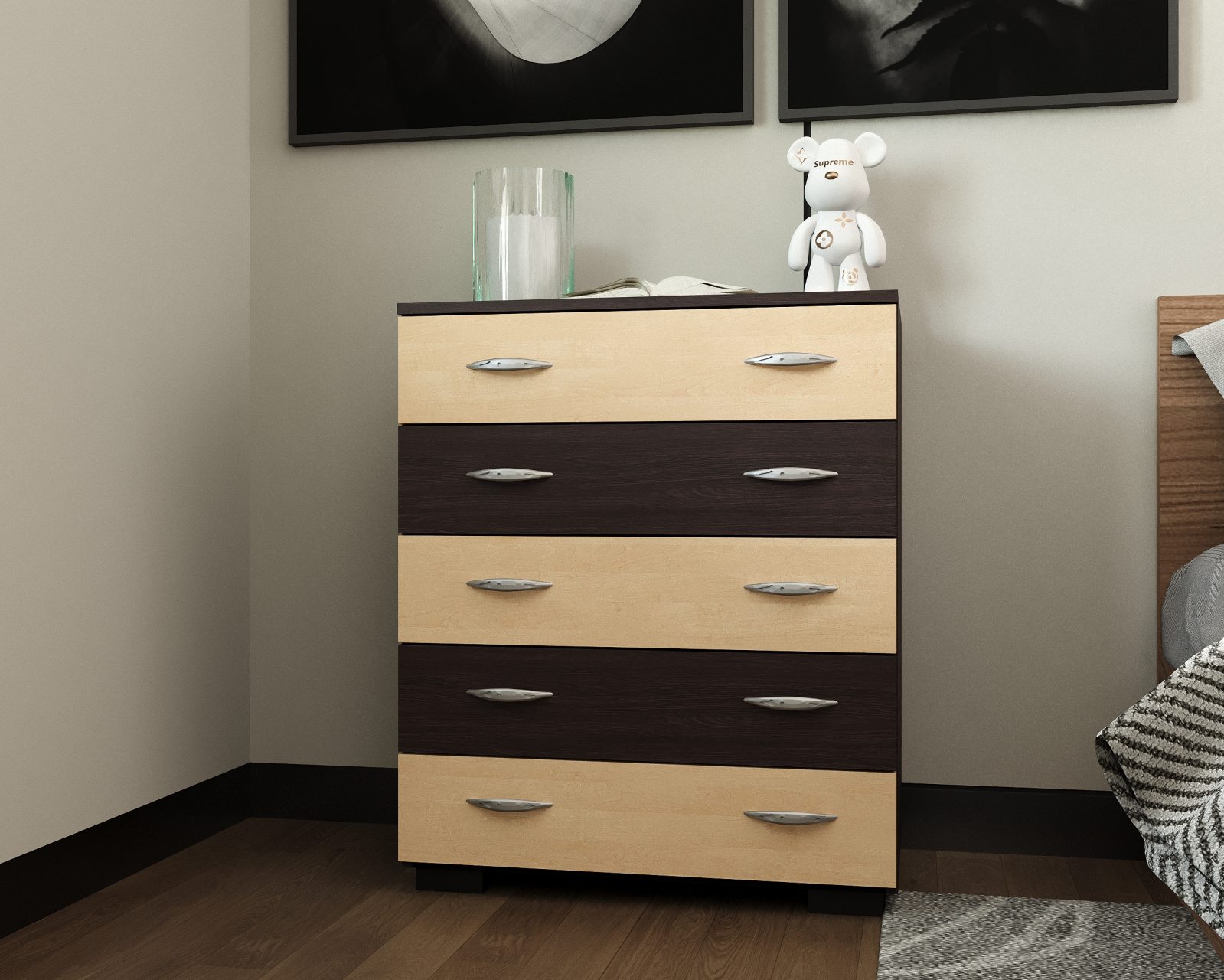 Comoda Alin 5 Sertare Wenge + Mesteacan