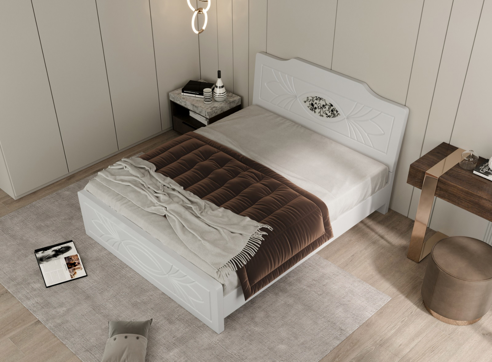 Pat ZQB813, cu design modern și structură solidă, realizat din MDF infoliat, potrivit pentru dormitor. Construcția robustă asigură stabilitate și confort în utilizare.