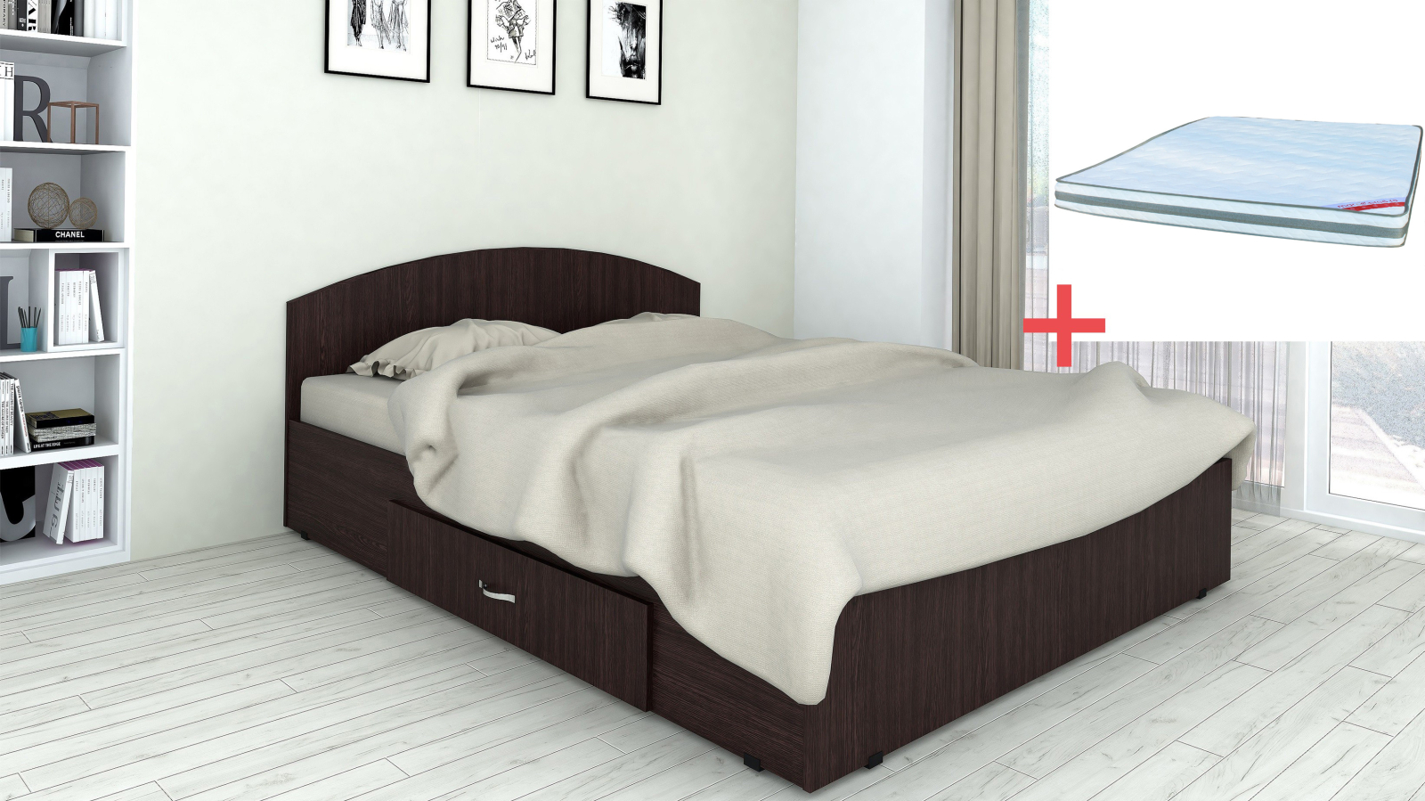 Set pat mijloc cu saltea pentru dormitor, cu design modern și structură practică, prevăzut cu sertar pentru depozitare și saltea din spumă, potrivit pentru utilizare zilnică.