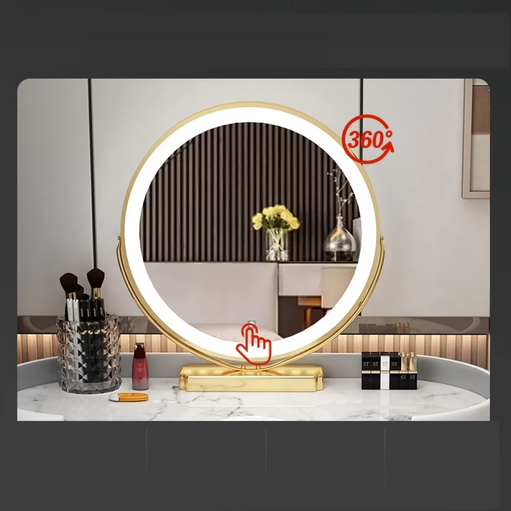 ● Oglinda noastră de machiaj iluminată cu LED poate comuta intre: lumina naturală, lumina caldă și lumina rece, oglinda de machiaj poate fi rotita la 360° si ajustata in functie de unghiu de care ai nevoie. Apoi puteți alege lumina dorită în funcție de diferite scene și diferite machiaje.
